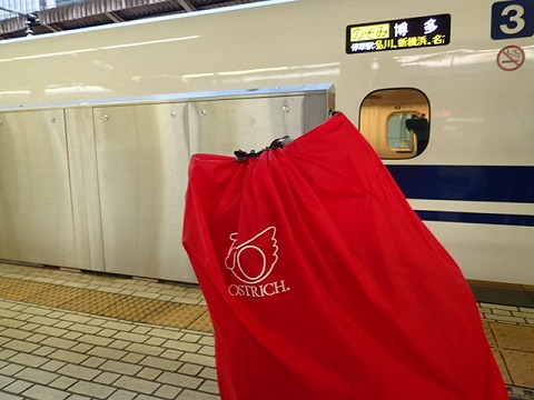門司港行駅の入り口で自転車組み立て。