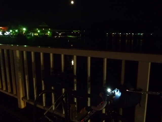 250号に入る前の川?月をバックに撮影。