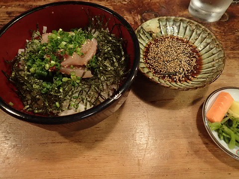 夕食は郷土料理を出している居酒屋で、琉球丼とだんご汁。