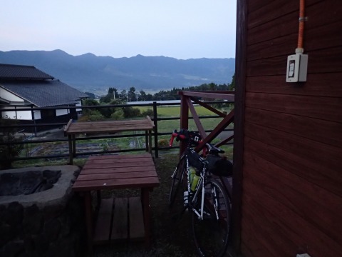 宿はホテルでなくログハウスだったので、自転車は外に放置してました。