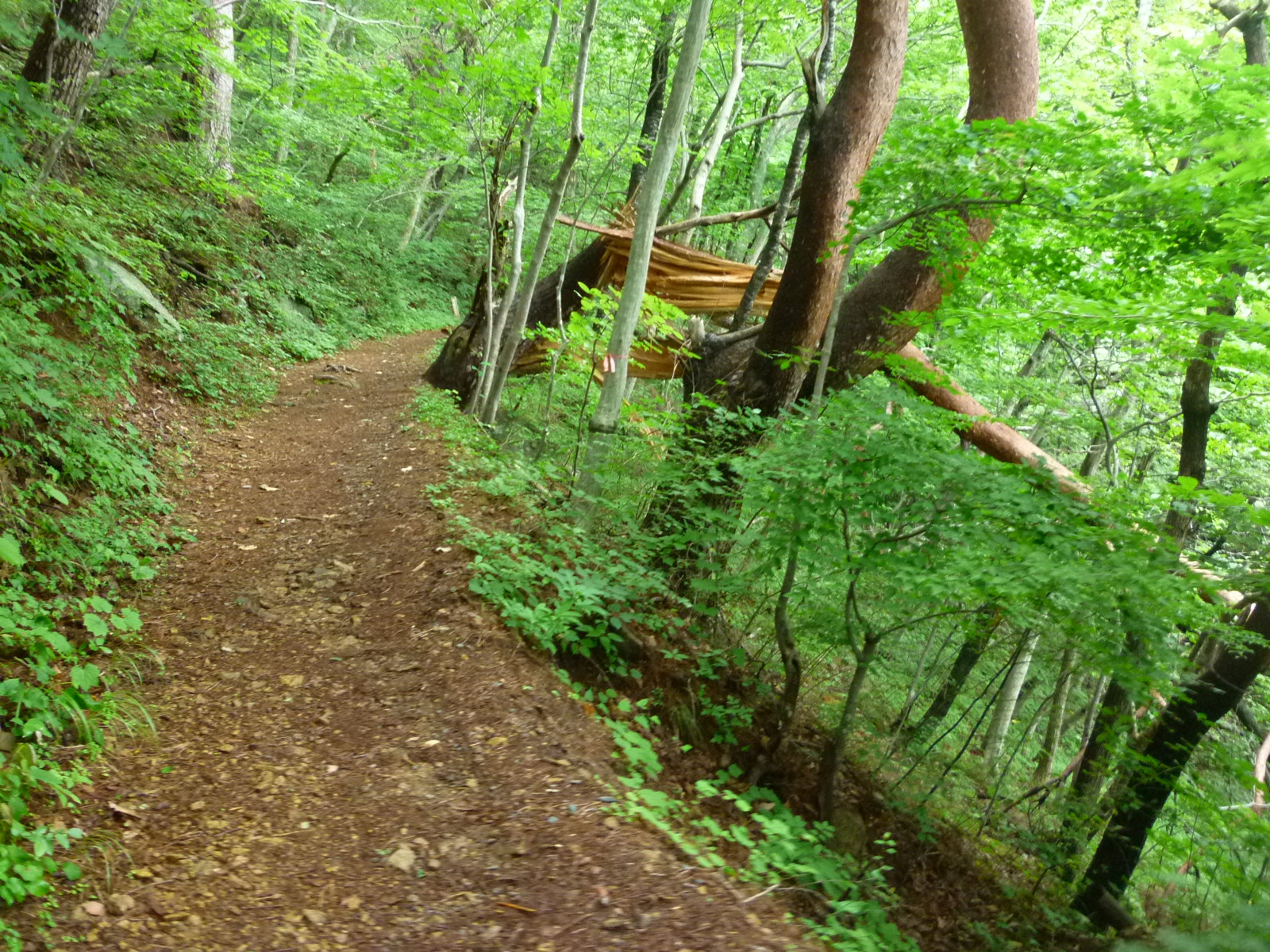 狭い山道が広くなりやがて下りへ。安全に早く下ります。